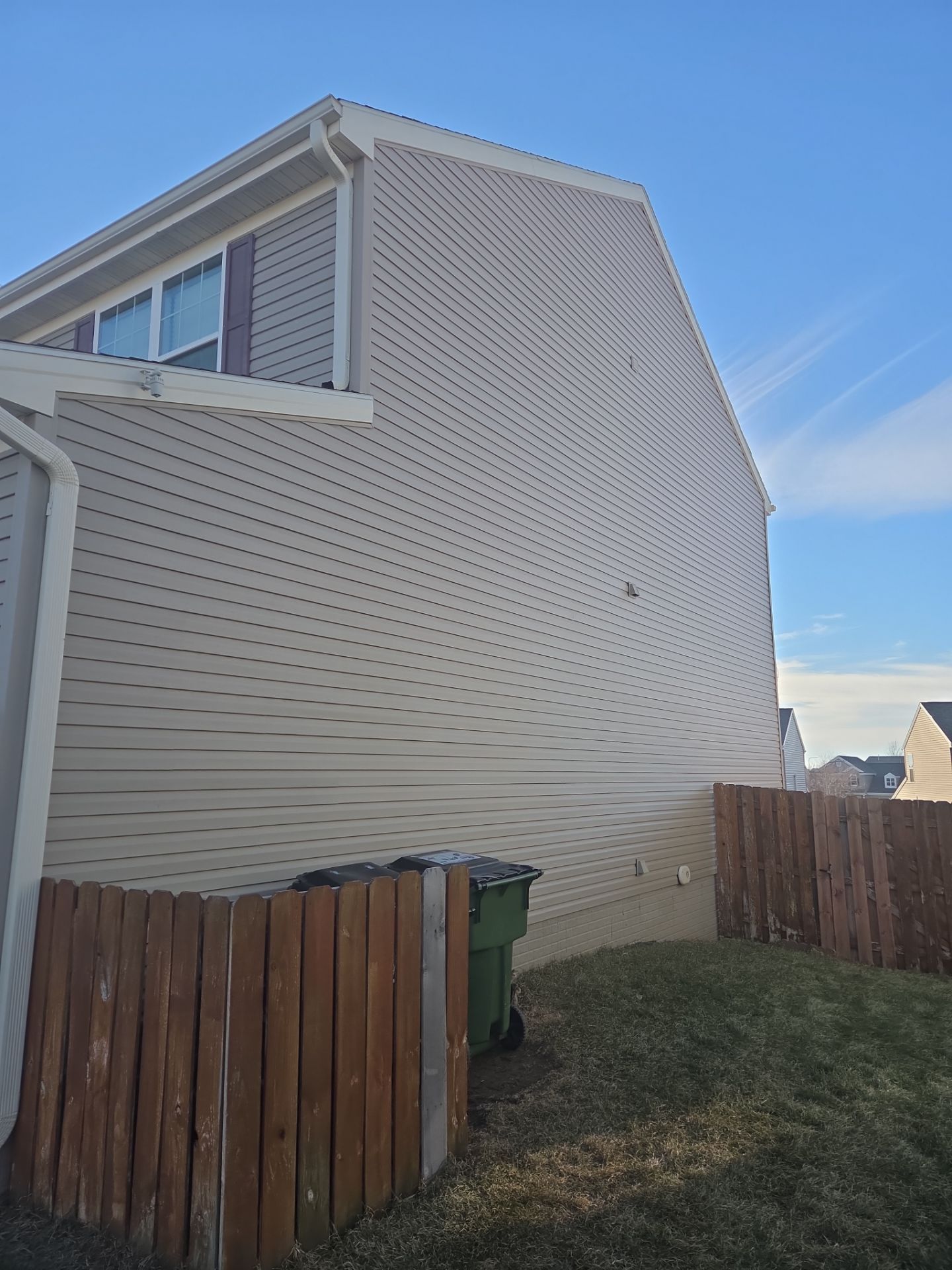 Replace vinyl siding on rear and left due to hail. Replace rear patio door